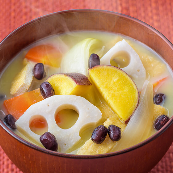 Historically, February 8th is regarded as an important juncture that marks the time to start anew. Traditionally it referred to starting to work on the spring crops, or starting to “work” on something again after the new year holidays and winter “hibernation”. On this day, called “Kotoyouka”, people wished for good health and abundant crops. As a ritual, people often used all of the harvested vegetables and made a nutritious miso soup to celebrate with. This soup became known as “Okoto-shiru”, literally the “thing soup”.